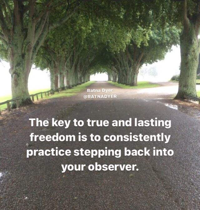 The observer enables us to see ourselves when we are caught in or acting from our ‘stuff’; emotions, behaviours and belief systems, and to inwardly step back, create space and make more conscious choices.